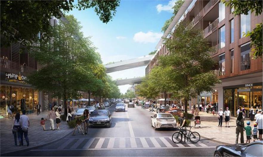 ↑在一層有一個(gè)新的街區(qū),其中包括充滿活力的商業(yè)網(wǎng)點(diǎn)、辦公室和休閑空間