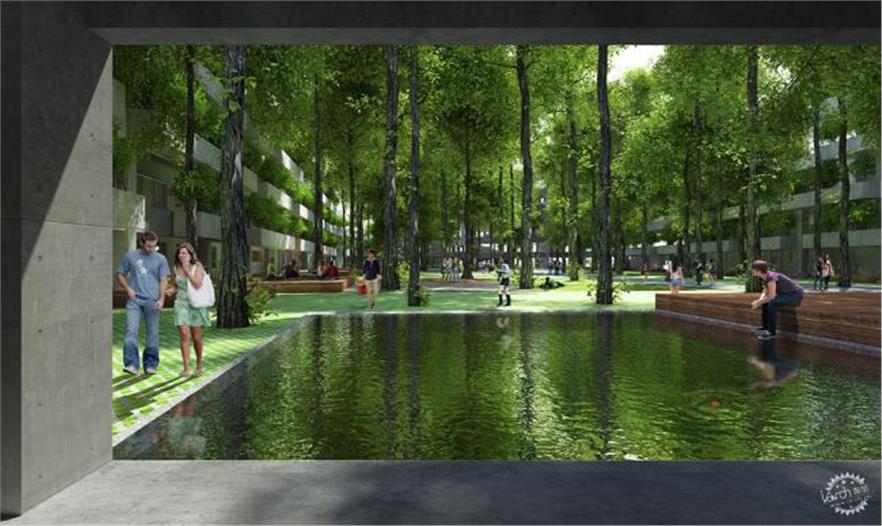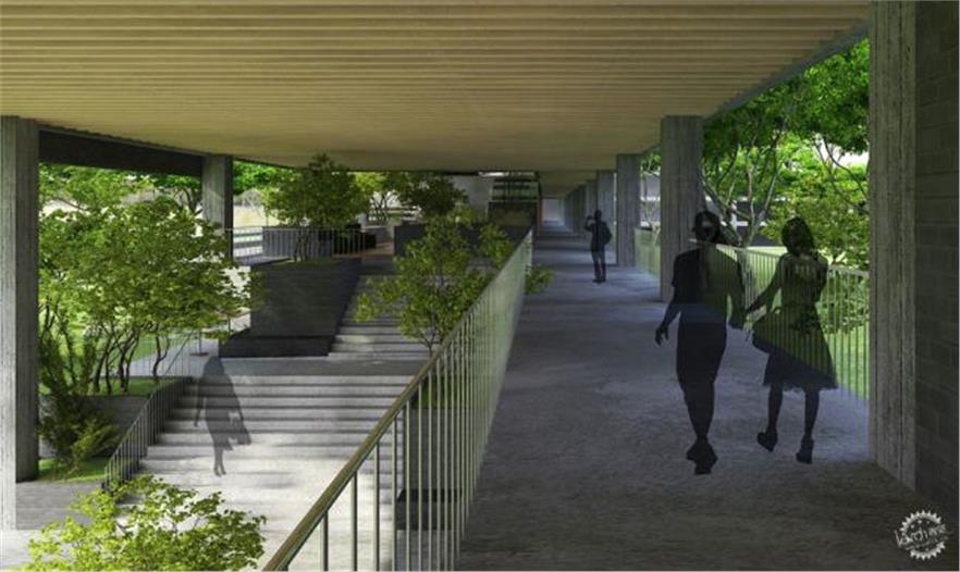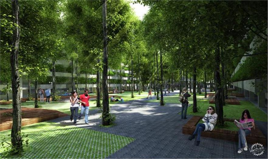 為了打破垂直的建筑形式,F(xiàn)PT大學(xué)的設(shè)想是一個(gè)森林山的概念,在其上生長(zhǎng)出一個(gè)由混凝土和磚打造的城市。通過比被破壞的建設(shè)創(chuàng)造更多的綠地,該項(xiàng)目將有助于對(duì)抗環(huán)境壓力,成為一個(gè)可持續(xù)發(fā)展的催化劑。