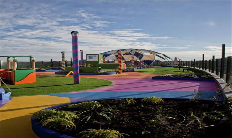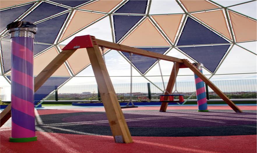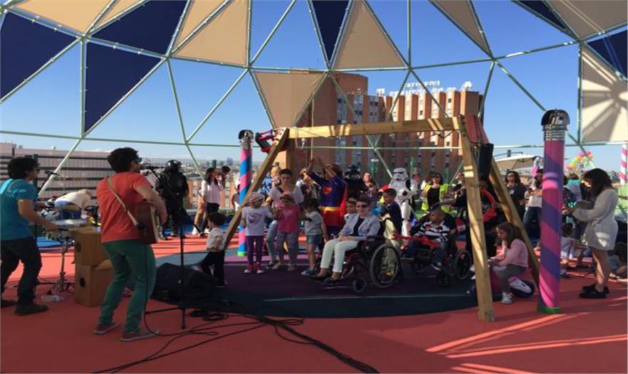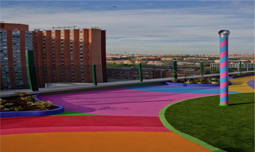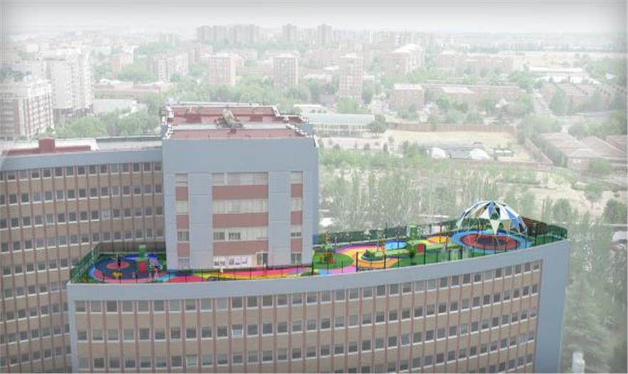 該項(xiàng)目由Moneo Brock工作室和Juegaterapia基金會(huì)合租完成,整個(gè)設(shè)計(jì)為無(wú)償?shù)男问?。該設(shè)計(jì)將西班牙馬德里的12 de Octubre醫(yī)院(每年的住院病人約為7000人)原先的800平米屋頂改建成了遍布觀(guān)賞性植物的游樂(lè)場(chǎng)地。