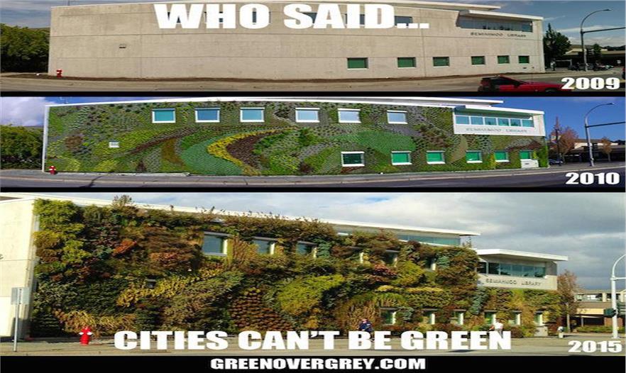 Green Over Grey 是一個來自加拿大的綠墻設(shè)計機構(gòu),專門設(shè)計建筑物表面上的植物。最近他們公布了一組照片,記錄了他設(shè)計的一面墻在這六年間的變化。這面“成長起來”的墻體像是一個垂直的熱帶雨林。