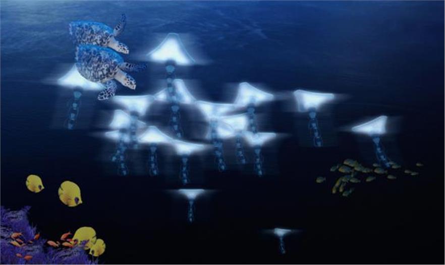 ↑漂浮單元希望能讓人與海洋生物和諧共處