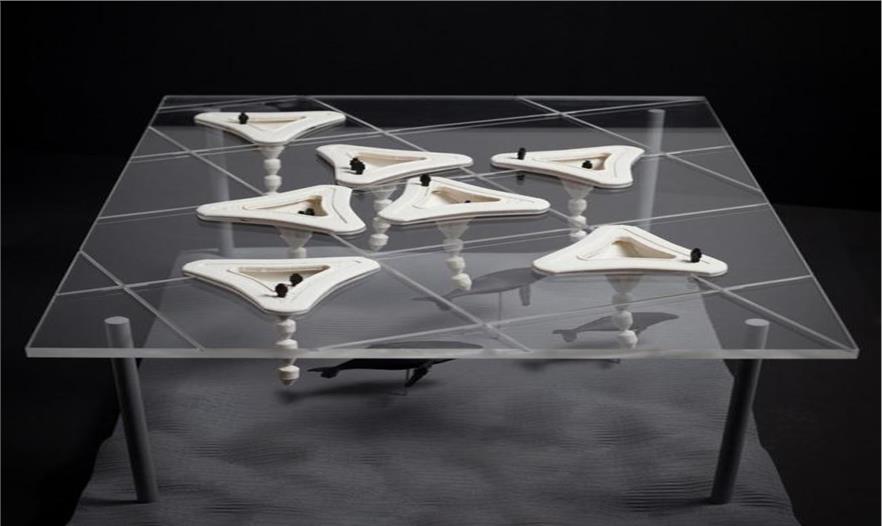 ↑從模型頂端可以清晰地看到漂浮單元的三角形結(jié)構(gòu)