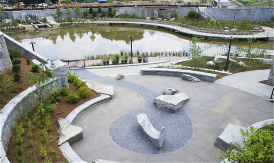 雨水徑流和破壞性的洪水曾經(jīng)一直困擾著周邊地區(qū),現(xiàn)在Historic Fourth Ward公園解決了這一問題。2英畝湖不僅提供了一個引人注目的視覺和自然聚集的地方,同時也作為雨水蓄滯洪區(qū)。每分鐘可以產(chǎn)生最少425加侖的水,即使在干旱時期也可以為園區(qū)內(nèi)的草坪和運動場提供灌溉水。在這個作用下,該湖泊增加了下水道的容量,降低了對老齡化的城市基礎設施的負擔,減少了下游的洪水災害和財產(chǎn)損失。
