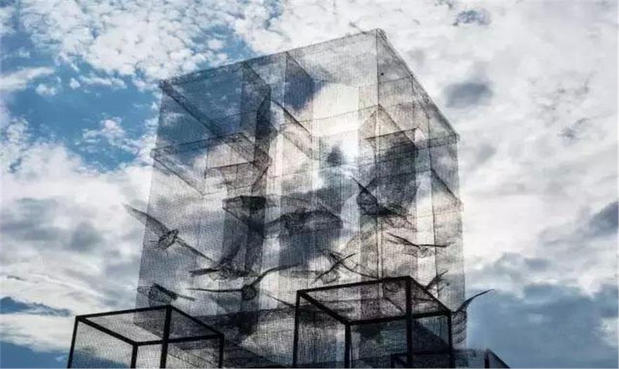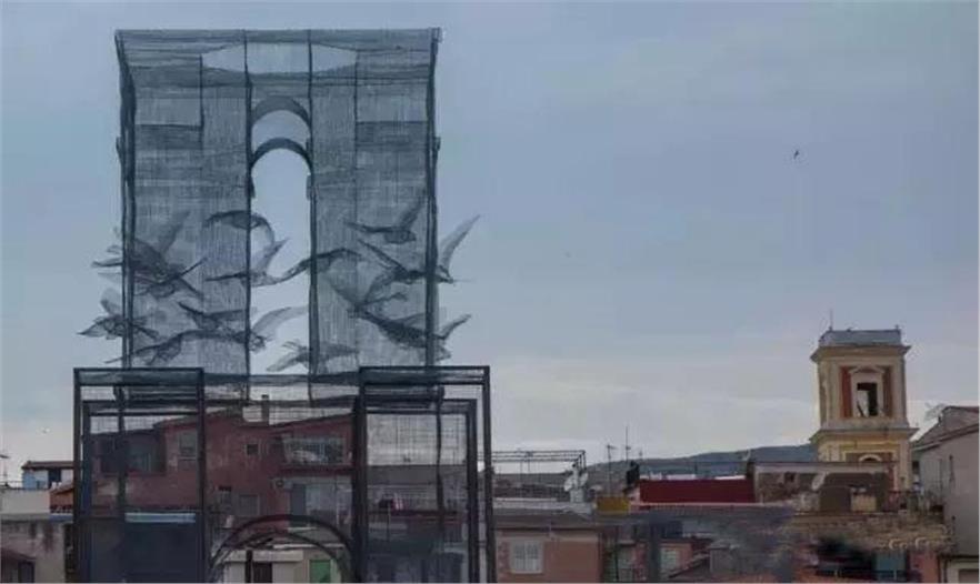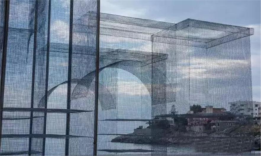 2015 年的「Meeting del Mare」場邊出現(xiàn)了一座座大型裝置藝術,這是由藝術公司 Incipit 主導的公共藝術作品,作者是擅長用絲網(wǎng)編出人體雕塑的 Edoardo Tresoldi。這次他不做人體,改作大型的建筑體,全部的作品都以手工製作。半透的絲網(wǎng)製作而成的實體建筑,讓視覺游走在虛實之間,打造出如夢似幻的氛圍,美的令人屏息。