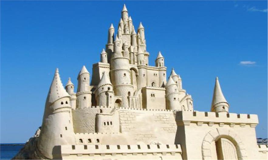 這個(gè)畫面來源于2011年馬塞諸塞州維威爾沙灘(Revere Beach)上舉辦的美國沙雕藝術(shù)節(jié),出自一個(gè)童話故事。簡潔、白沙建造的高樁炮塔能讓你只使用桶和鏟的情況下建造出摩天大廈。