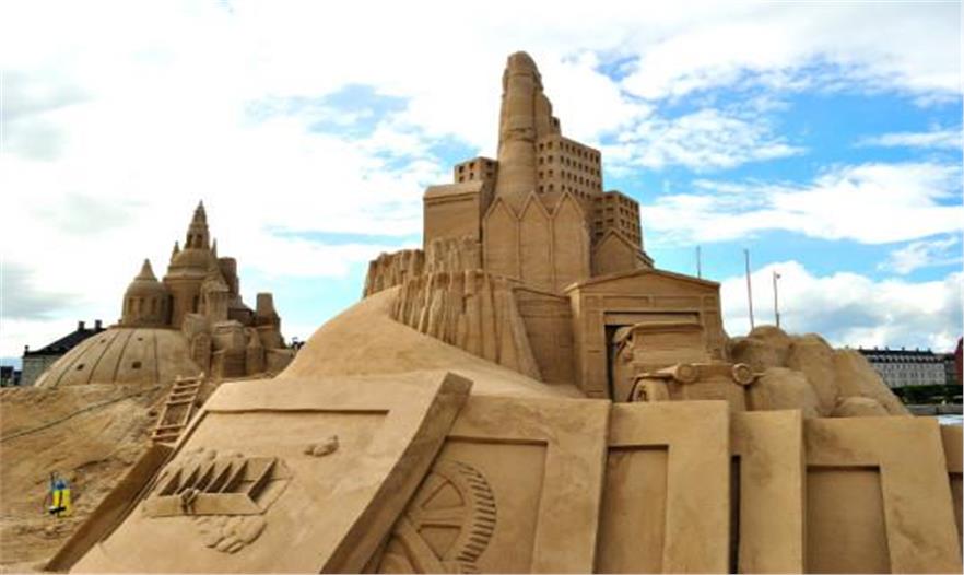 這個(gè)城堡像是蝙蝠俠或金剛狼要打擊的反派頭目的巢穴。如果你的孩子稍大一點(diǎn),他們可能會(huì)在沙堡設(shè)計(jì)中增加其他神秘的元素。這個(gè)雕塑也是2012年哥本哈根沙雕藝術(shù)節(jié)的作品。