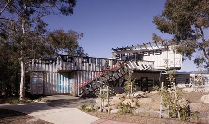 我們看到過把集裝箱改造成各種有趣的東西——但如果是一個游樂場呢?基于設(shè)計一個獨(dú)特的冒險游樂場和兒童活動空間,墨爾本Phooey Architects事務(wù)所使用4個廢棄的集裝箱建造了這個游樂場。斯金納兒童游樂場中許多結(jié)構(gòu)元素都是切割集裝箱、重新組裝而成,樓梯欄桿、遮陽篷和陽臺都是由部分廢棄的集裝箱建造。這些材料上留下的痕跡顯示它們是兒童建造樹屋的材料和天然藝術(shù)品的部分材料。