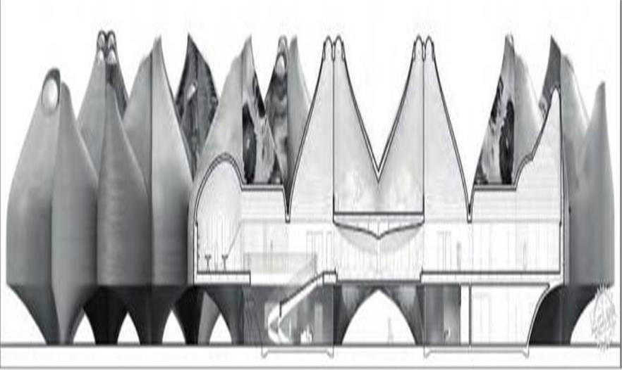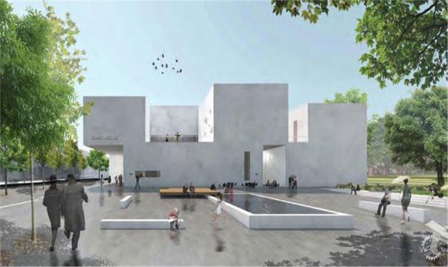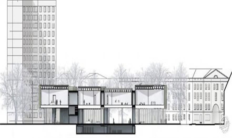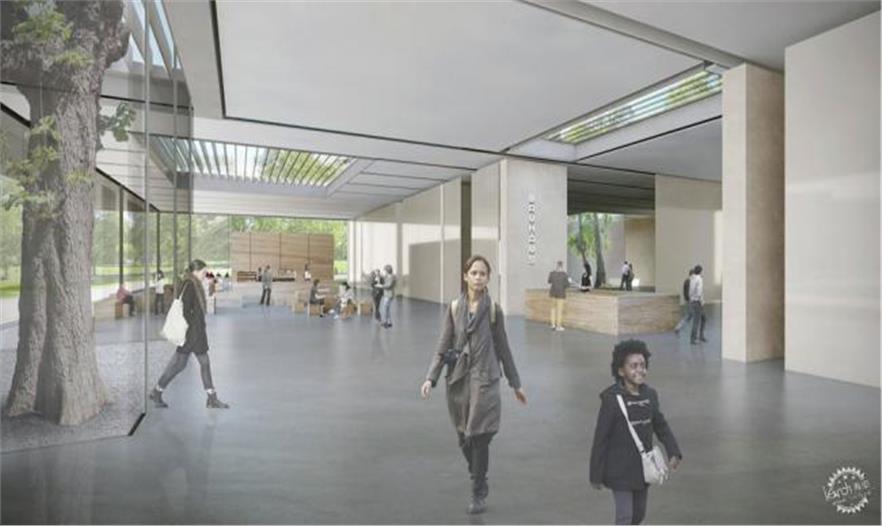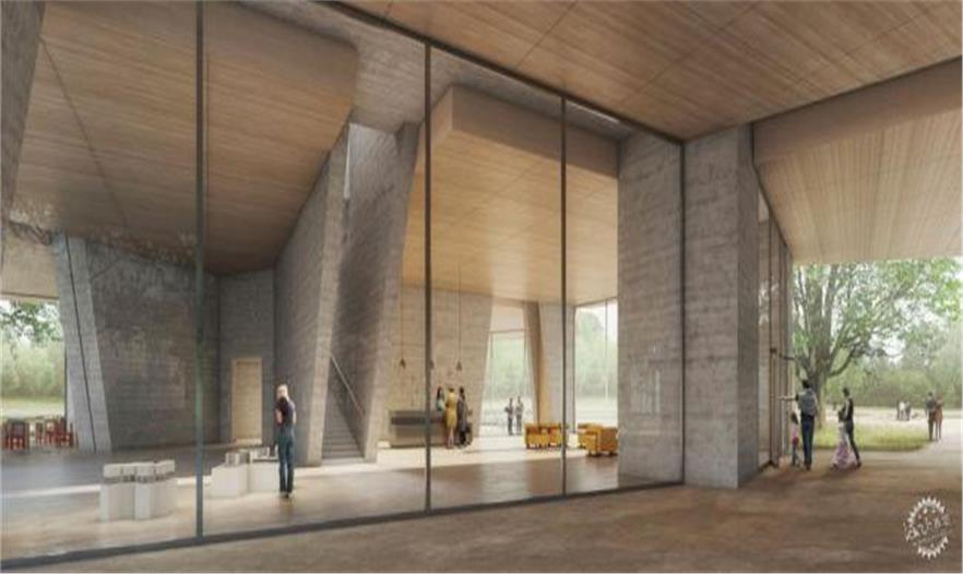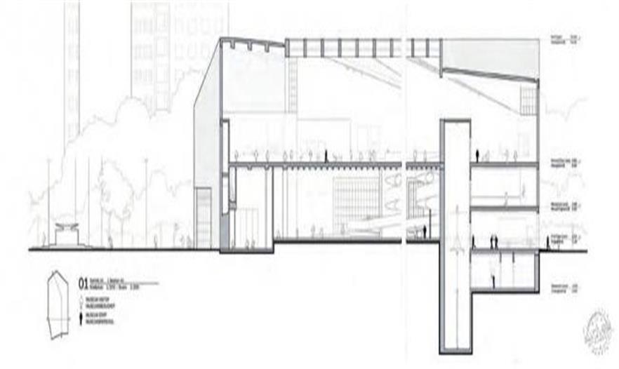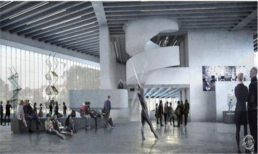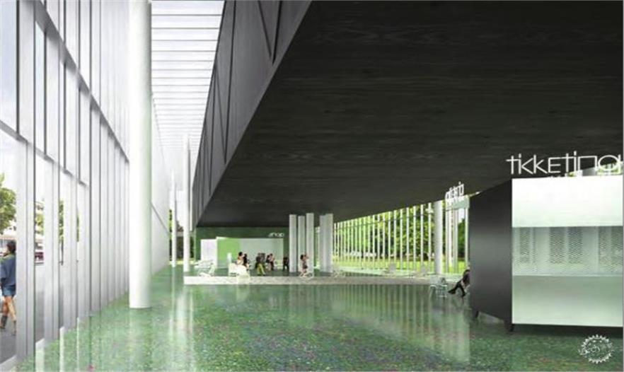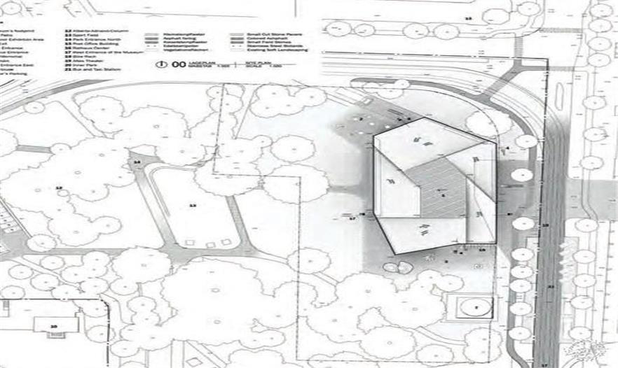 摘自評(píng)審團(tuán)的評(píng)估: 兩層的多邊形結(jié)構(gòu)全方位開(kāi)放,開(kāi)辟了內(nèi)部和外部之間戲劇性的和多方面的參照,并重新定義了市政公園的入口。這樣的設(shè)計(jì)結(jié)果會(huì)得到一個(gè)精致的外觀,能很好地集成到綠地,不會(huì)被視為一個(gè)單獨(dú)出現(xiàn)的博物館殿堂,而是作為一個(gè)交流和文化接觸的開(kāi)放型空間。