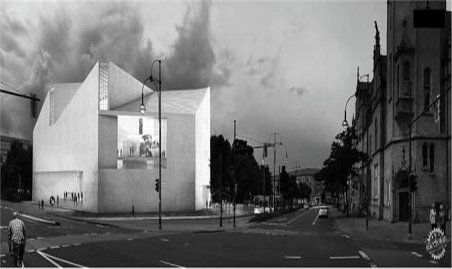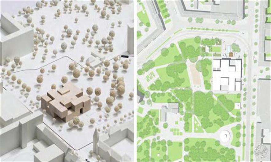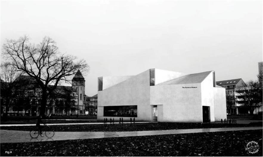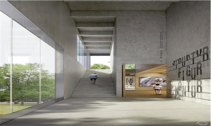 摘自評(píng)審團(tuán)的評(píng)估:該設(shè)計(jì)首先也是最重要的特點(diǎn)在于它的多邊形和自成一體的結(jié)構(gòu)外殼,敏感地解決了它在城市設(shè)計(jì)中的位置。對(duì)于Kavalierstrasse 來(lái)說(shuō)它具有一個(gè)明確的邊緣,對(duì)于Friedrichstrasse來(lái)說(shuō)它的斜坡形成了一個(gè)明顯的轉(zhuǎn)變。總而言之,設(shè)計(jì)稿讓我們贊同了其雕塑的做法,并且表明了以博物館為市政建筑的堅(jiān)定承諾。