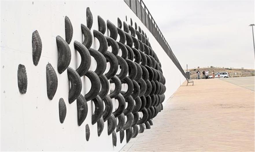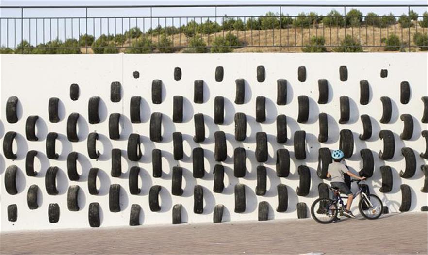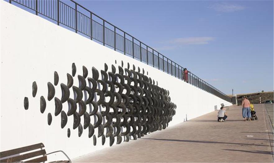 ONA使用的輪胎來自于托萊多和馬德里之間的seseña輪胎回收場。這片橡膠配件的海洋,一眼望去全是輪胎,黑壓壓的一片死氣沉沉。這里的輪胎唯一的用途是重新排列,設(shè)計為公共藝術(shù)品,廢舊的輪胎被注入新的血液,使公眾對其有新的認(rèn)識也激活了公共空間。