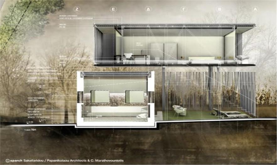 界限:羅列出的這些建筑利用其形狀規(guī)劃出中央戶外空間,聚集文化活動、旅游基礎(chǔ)設(shè)施、酒店以及休閑娛樂規(guī)劃(互動性博物館、農(nóng)業(yè)旅游、浴室和膳宿)??赡娴娜萜鹘ㄖc羅列建筑之間的關(guān)系進一步加強了限制的概念,成為到達中央?yún)^(qū)域(中央廣場)和擴散區(qū)域(自然元素)的過渡元素。