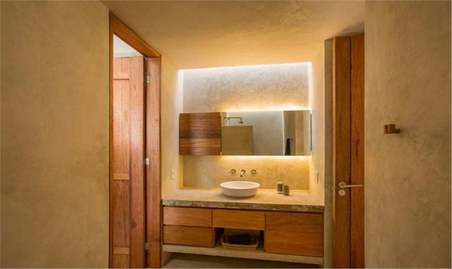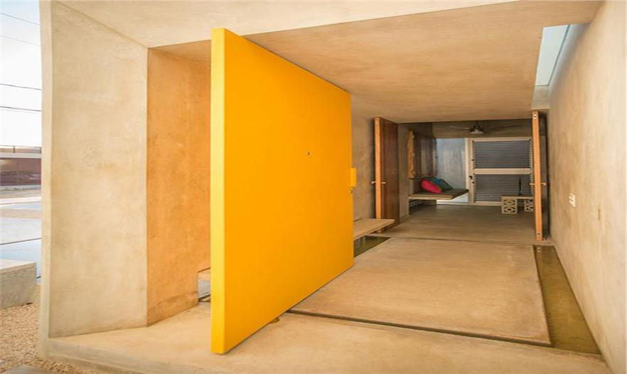 當(dāng)?shù)氐臍夂蚝臀米邮且粋€難題,窗戶可以保持自然通風(fēng) 粉刷墻壁和混凝土地板令室內(nèi)保持意想不到的溫暖、浴室、水元素貫穿住宅。