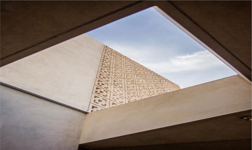 連同鄰近的墻面,形成了一個小廣場.雙層高的天窗開口能有效疏散熱空氣。