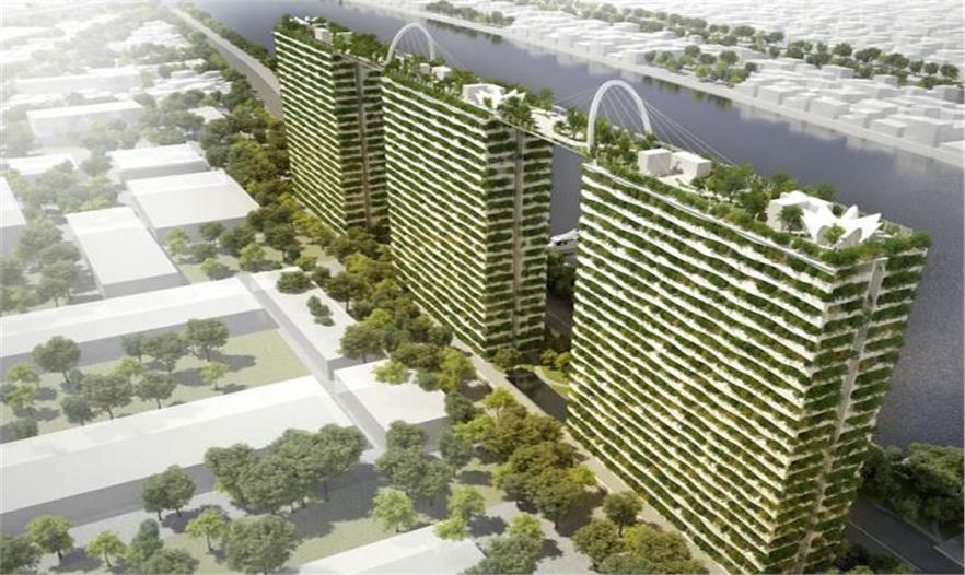vo trong nghia 建筑事務(wù)所以設(shè)計(jì)綠意蔥蔥的建筑而聞名,他們?cè)O(shè)計(jì)了鉆石荷(diamond lotus)項(xiàng)目——一個(gè)大型的住宅規(guī)劃,可容納720戶人家。3個(gè)獨(dú)立的公寓建筑通過(guò)屋頂花園連接起來(lái)。