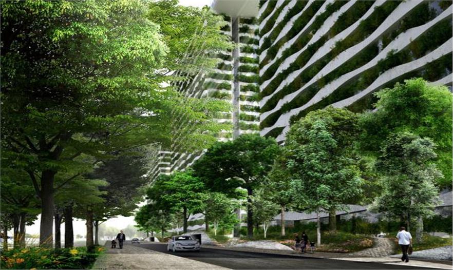 這個(gè)建筑有22層,頂端是屋頂花園,為居民提供了廣闊的綠色空間,這在城市中是很少見的。建筑立面由種植箱覆蓋,種滿竹子。設(shè)計(jì)師選擇特色植物調(diào)整溫度,同時(shí)為居民提供陰涼。由于胡志明市現(xiàn)在的發(fā)展導(dǎo)致了綠色空間的減少,該項(xiàng)目的屋頂花園和綠色屏障立面不僅僅會(huì)增強(qiáng)居民的舒適感,還會(huì)增加更為壯觀的城市景觀。