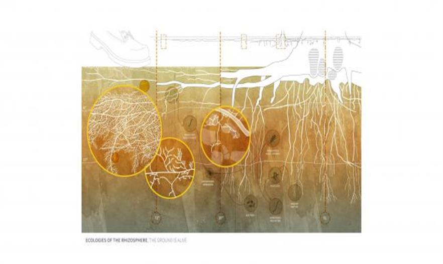 地面根系系統(tǒng)建筑,由弗吉尼亞大學(xué)的研究生、ASLA學(xué)生會(huì)員Gwendolyn McGinn領(lǐng)導(dǎo)