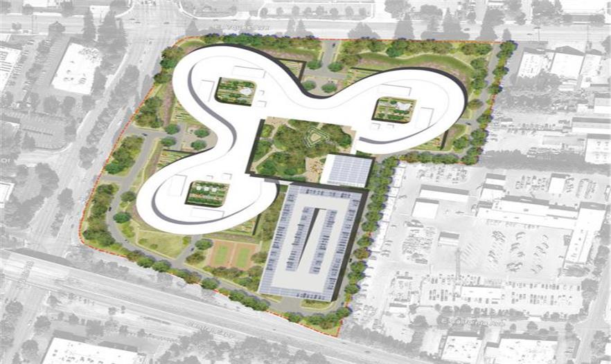 如果建成,它將取代現(xiàn)在的九座老建筑,其外觀就類(lèi)似四葉草,由三個(gè)相互關(guān)聯(lián)的結(jié)構(gòu)組成——每一部分都有六層樓高。
