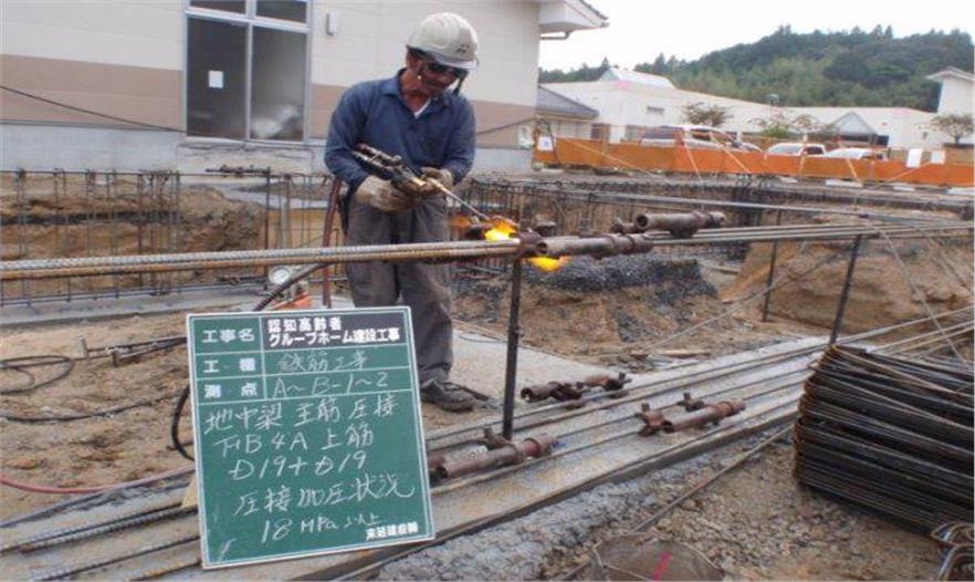 基礎(chǔ)鋼筋籠中,主要鋼筋的現(xiàn)場(chǎng)對(duì)接焊接續(xù)接情況,局部特寫(xiě)