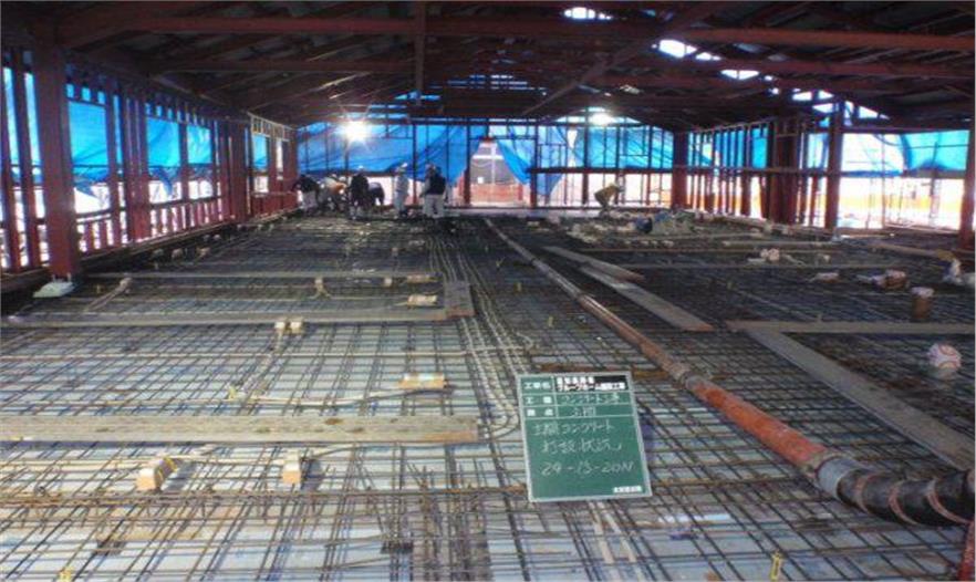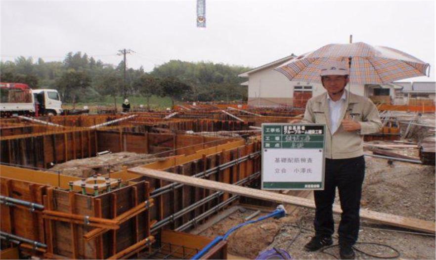 日本住宅保證檢查機(jī)構(gòu)的工作人員,在施工現(xiàn)場(chǎng),進(jìn)行基礎(chǔ)配筋檢查驗(yàn)收工作。