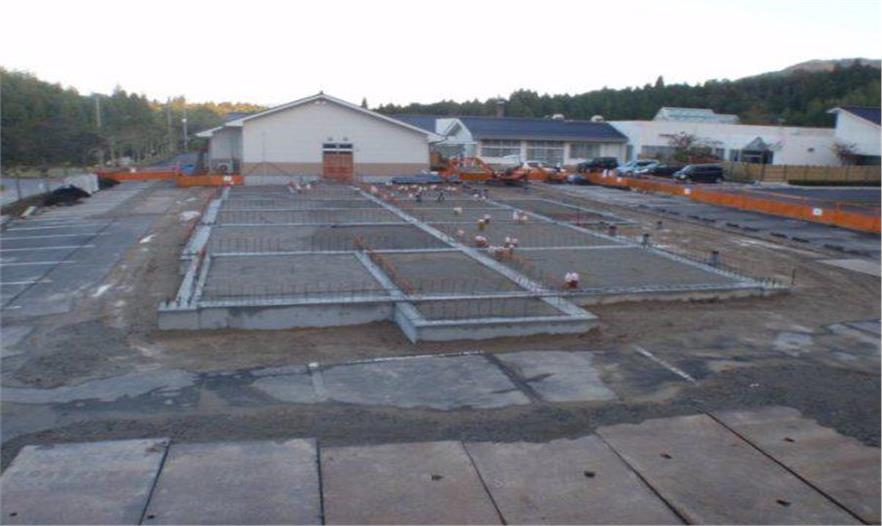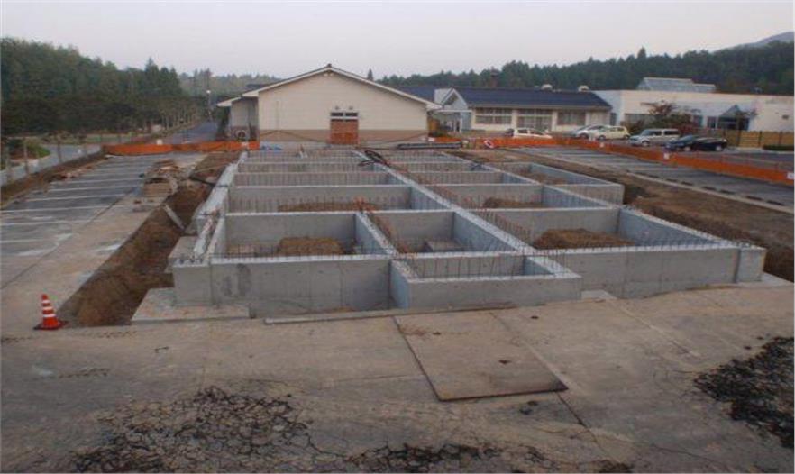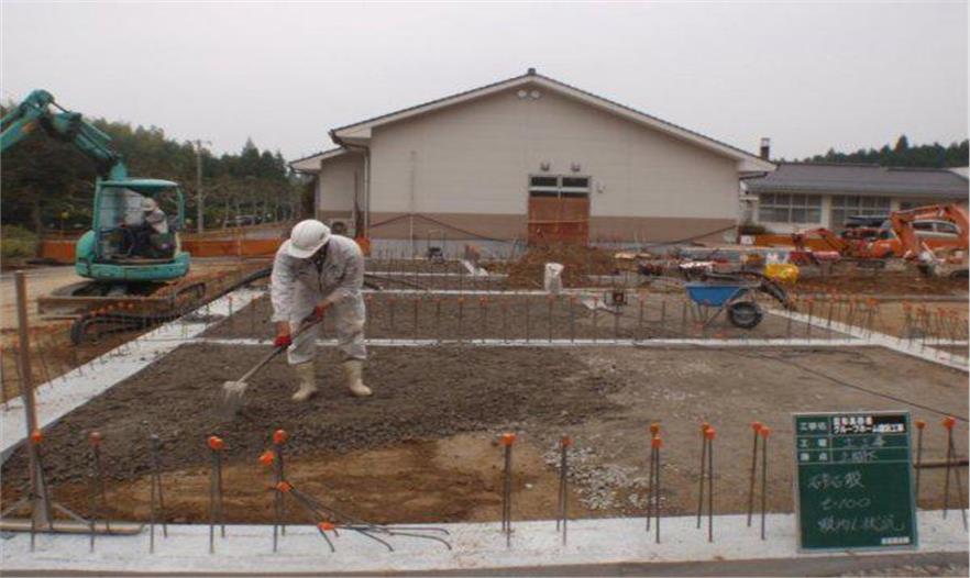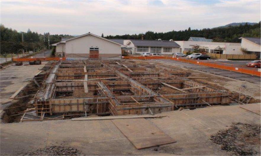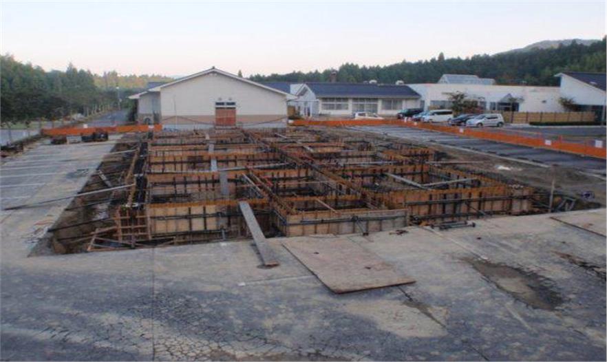 使用大型挖掘機(jī)械,進(jìn)行整個(gè)地基土壤的挖掘施工,同步進(jìn)行基礎(chǔ)下部,素混凝土墊層的現(xiàn)場(chǎng)澆注施工