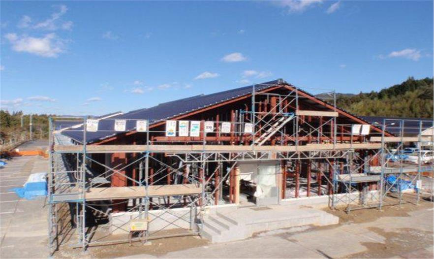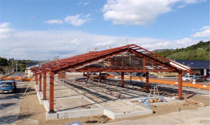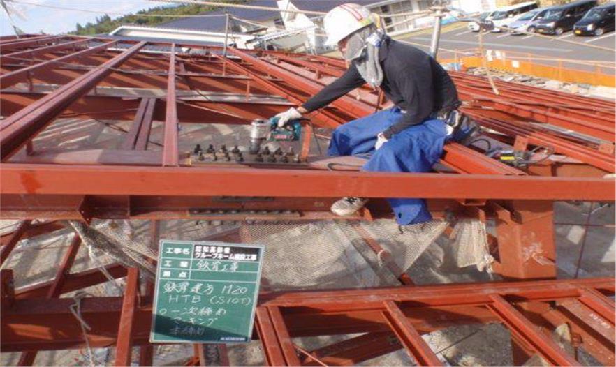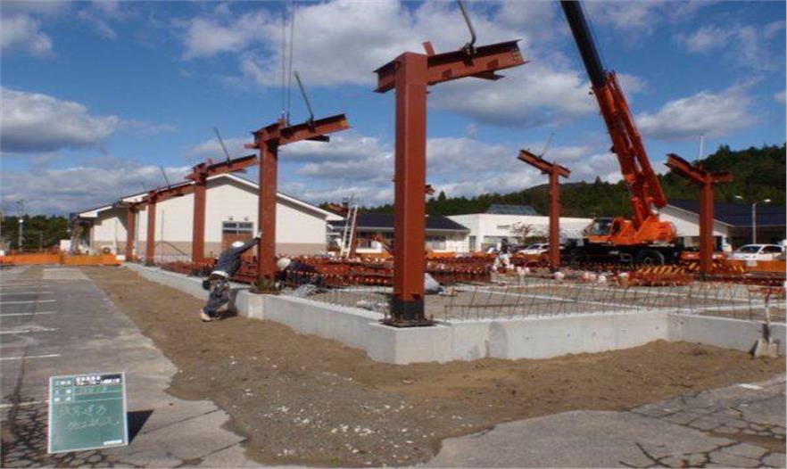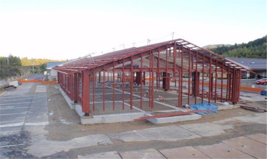 鋼結(jié)構(gòu)住宅,屋面構(gòu)造完工時(shí)的施工現(xiàn)場(chǎng)的外觀一瞥
