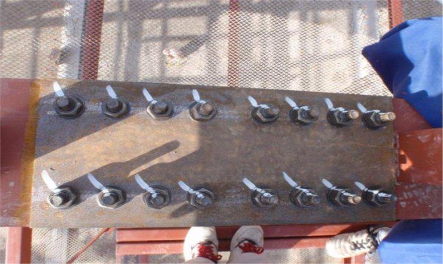 可見(jiàn),鋼結(jié)構(gòu)構(gòu)件,連接節(jié)點(diǎn)位置,緊固螺栓上,涂刷了白漆,起到反映松動(dòng)情況的作用