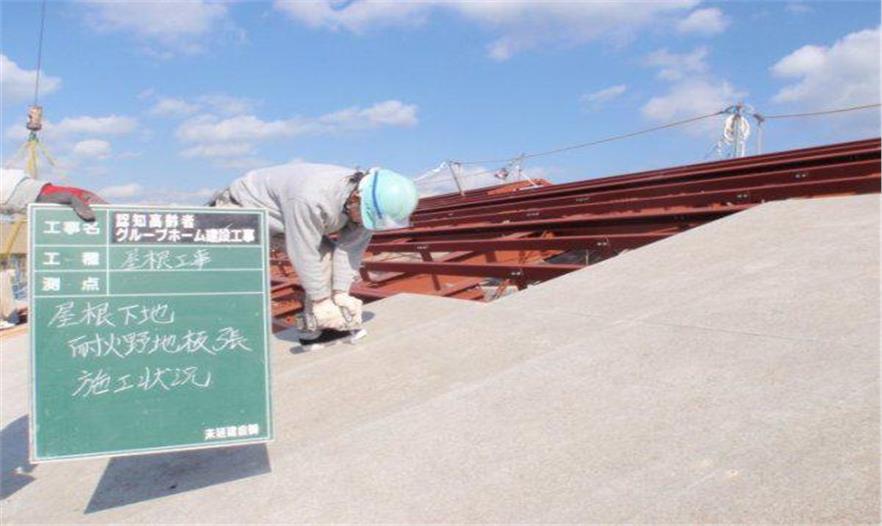 室外屋面上,在鋼結(jié)構(gòu)屋架框架的外側(cè),鋪設(shè)耐火屋面板,施工現(xiàn)場(chǎng)