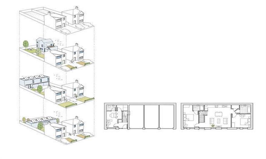 建筑事務(wù)所 Patrick Massey 的想法比較直接,不是空間小嗎?那就把建筑間未利用的土地利用起來!他們設(shè)計了一系列的小住宅,希望小建筑能見縫插針地建造在現(xiàn)有的房子之間…