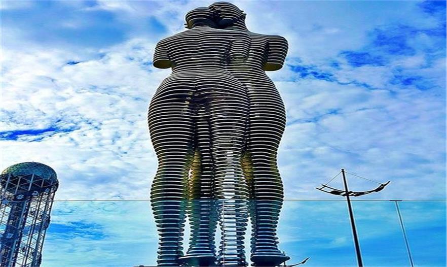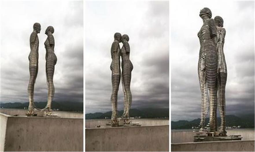 格魯吉亞小鎮(zhèn)巴統(tǒng)(Batumi)有著兩尊8米高的移動(dòng)雕像,“Man and Woman”,這是由格魯吉亞雕塑家塔瑪拉(Tamara Kvesitadze)根據(jù)一本1937年的愛(ài)情悲劇小說(shuō)“Ali and Nino”設(shè)計(jì)建造的,沒(méi)有人知道這部小說(shuō)的作者是誰(shuí),但這個(gè)凄慘的愛(ài)情故事已經(jīng)在全世界范圍內(nèi)被翻譯成30多種語(yǔ)言。