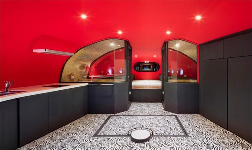 地面由兩個單元組成,分別具有各自的廚房、衛(wèi)生間、起居室及臥室。而戳在中間突然高起來的由金色鱗片包裹的塔顯得格外顯眼、突兀、怪異……不過,這正是醫(yī)生想要的。它給人們帶來了無限聯(lián)想,吹風(fēng)機、鴨嘴獸、被風(fēng)吹亂長發(fā)的女子……塔的內(nèi)部同樣安排了廚房餐廳起居室及臥房,仿佛一個窺探遠(yuǎn)處的炮樓。