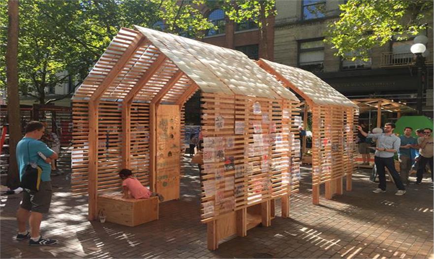 小亭子的框架由木材、膠合板、回收的花旗松板條和車架螺栓緊固件組裝而成。它可以很容易地進(jìn)行擴(kuò)展、折疊并適應(yīng)未來必要的用途。西雅圖不同區(qū)域的人們可以在 “精巧閣”里可以分享思想,和其他人建立友好的關(guān)系。
