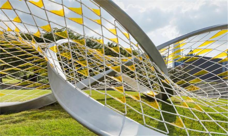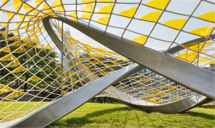 Dynamic Relaxation裝置位于美術館后面的山頂上。其幾何結構反映出公園地貌和連續(xù)曲面,也就是該公園的區(qū)域特征。它不僅是一個美觀的雕塑,還是一個多功能空間,用于休息、攀爬、懸掛和鍛煉。