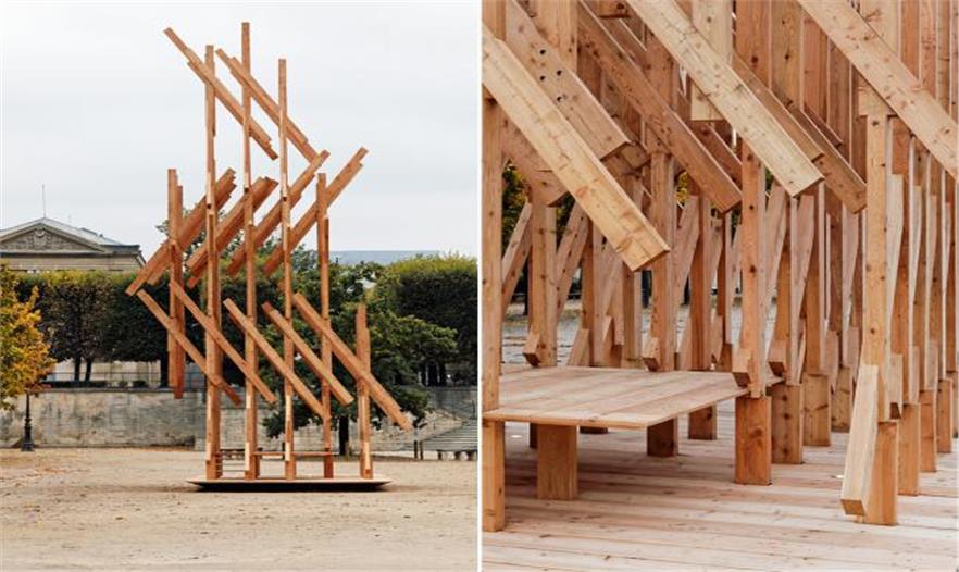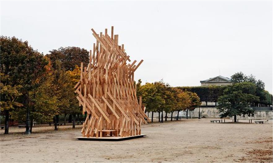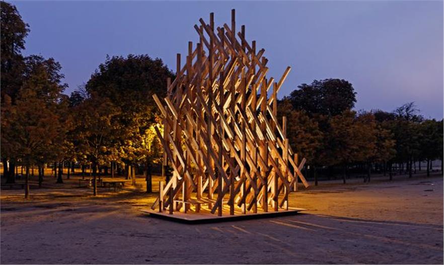 隈研吾最近在巴黎杜樂麗花園搭建了一座裝置,名為Yure.該裝置是一棟體現(xiàn)了游牧風(fēng)格、體現(xiàn)狂野創(chuàng)造藝術(shù)和建筑之間的一個(gè)新概念設(shè)計(jì)。