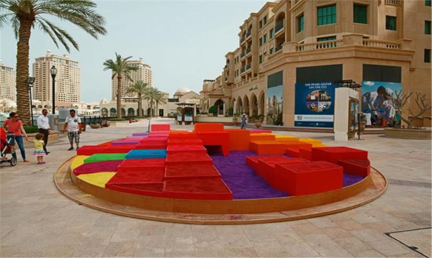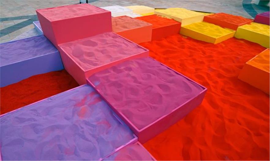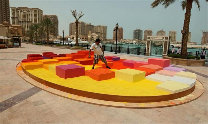 波蘭的藝術(shù)家Adam Kalinowski建造了一個(gè)互動(dòng)性的藝術(shù)裝置——夢(mèng)幻之城。它是使用30噸多彩的沙土和夾板構(gòu)成,設(shè)置在卡塔爾的多哈。
