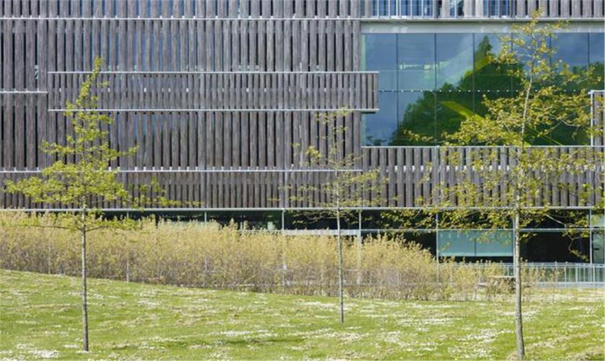 這一項(xiàng)目要求建筑能夠同周?chē)艿臉?shù)木和諧地交織在一起。建筑師因此決定使用自然的綠色元素作為連續(xù)的圖層,讓新建筑浮上面。景觀內(nèi)在保守的、強(qiáng)化的和緊湊的特質(zhì)構(gòu)成了這一項(xiàng)目的基礎(chǔ)。