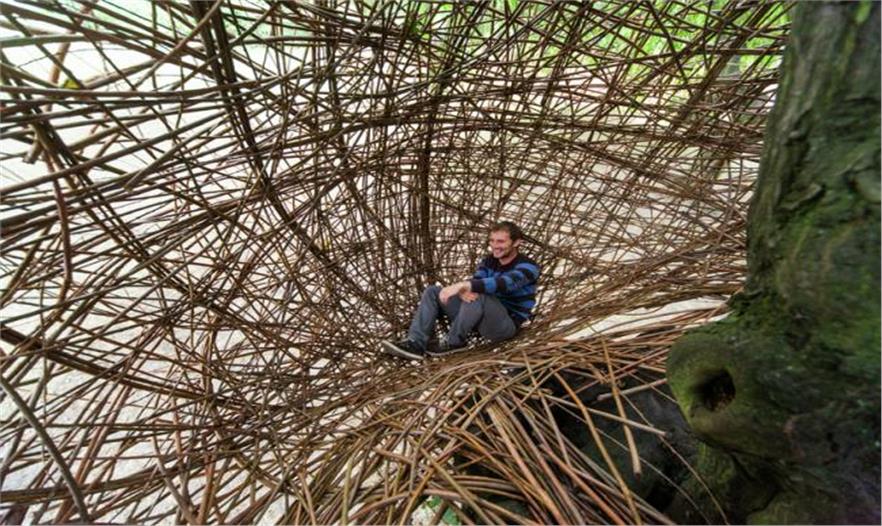 該設計地處捷克共和國。使用了價值約120美元的柳樹木材、搭建在在設計師的家鄉(xiāng)的一個公園里,樹枝之間的交錯,也可以避免損壞或影響到樹的整體。