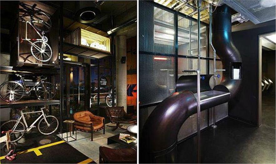 Stephen Williams Associates事務(wù)所受航海和運(yùn)輸?shù)膯l(fā)建造了一個(gè)有趣的酒店。設(shè)計(jì)師采用運(yùn)輸廠的集裝箱、繩索、回轉(zhuǎn)軸和其他元素建造,產(chǎn)生原始的工業(yè)運(yùn)輸倉庫的印象。25小時(shí)酒店的每個(gè)房屋看起來像船艙。