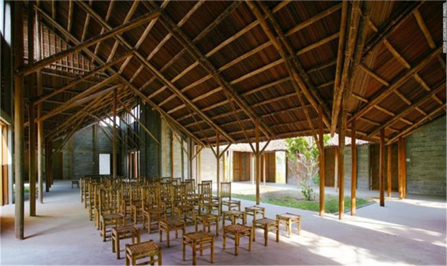公共建筑和社區(qū)類建筑獎:越南惠安社區(qū)活動中心(Cam Thanh Community House)。整個設(shè)計簡單質(zhì)樸,并且充分利用了當(dāng)?shù)氐馁Y源和材料。由竹子與椰子樹葉鋪成的房頂一起極大地削弱了太陽光輻射的威力,同時還為室內(nèi)提供了陰涼。