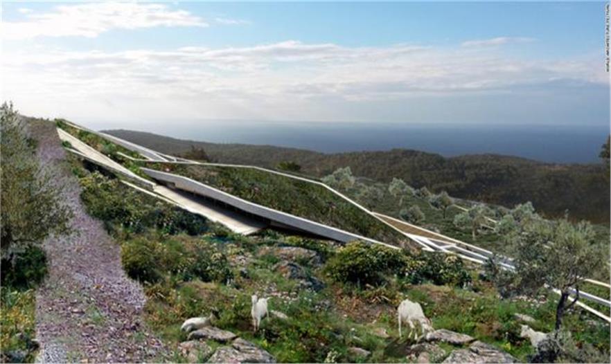 最佳未來建筑獎:希臘山丘小屋。山丘小屋坐落于維斯島的斜坡上,小屋建造在山壁內(nèi),靈感來源于洞穴和石窟。