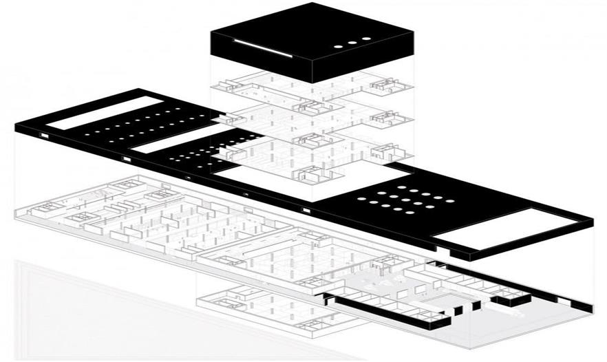 軸測圖,大立方體體量就是建筑的主要儲藏空間