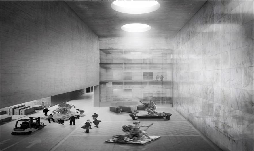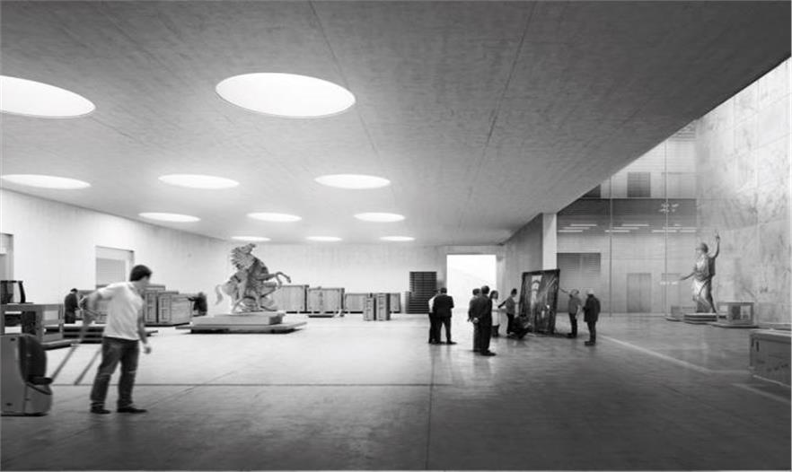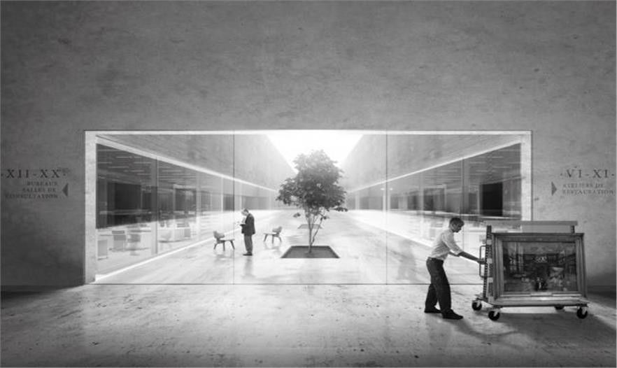 建筑中黑色的大立方體體量就是建筑的主要儲藏空間。建筑師用在船塢中修復(fù)的船的形象呼應(yīng)在盧浮宮修復(fù)的藝術(shù)品。除了詩意的意境,建筑師們創(chuàng)造的空間也如同蘭波的詩,十分的嚴(yán)謹(jǐn)和精準(zhǔn)。所有復(fù)雜的功能都被精心有序的編排。秩序感,乃是這兩位建筑師所捍衛(wèi)的建筑本質(zhì)之一。