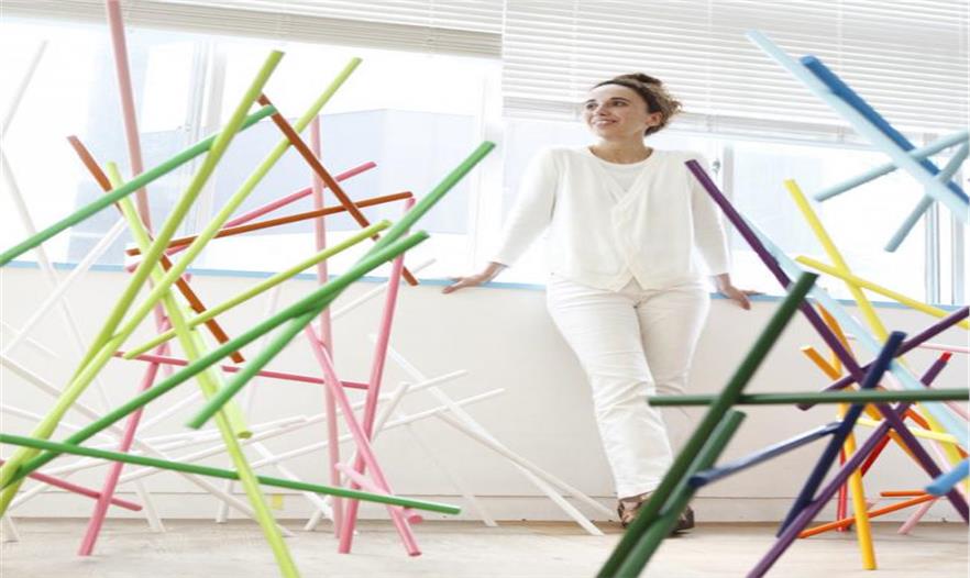 Emmanuelle Moureaux 從 1996 年就在東京生活,并在 2003 年創(chuàng)辦了"emmanuelle moureaux architecture + design"工作室。她創(chuàng)造了一個“shikiri”的概念,就是用顏色來區(qū)分空間(to divide space using colors),它們不僅僅是用來涂在表面上,而是可以創(chuàng)造出新的三維空間。她布置的展示和室內(nèi)空間都愛用這種像彩虹一樣的搭配。