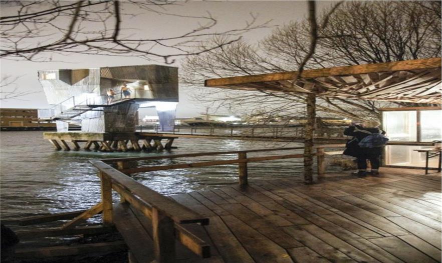 Raumlabor 設(shè)計團隊最初在設(shè)計這座桑拿房時,是想創(chuàng)造一個令周邊各種類型的居民經(jīng)過時都會感興趣的方案,比如園丁、滑冰愛好者、慢跑一族、遛狗者、賽車手或是到了傍晚來這里看落日的情侶等等。 “Frihamnen 正在失去其作為一個工業(yè)港口的地位,它慢慢地變成了哥德堡的城市中心,它漸漸開始向市民開放。” Raumlabor 的兩位建筑師 Francesco Apuzzo 與 Jan Liesegan 解釋說。據(jù)說到了 2021 年,歷經(jīng) 400 年歲月的 Frihamnen 港口區(qū)域?qū)⒆兩頌橐粋€公共公園的一部分。 “公共洗浴間曾是這個城市社交活動最為頻繁的場所之一,”他們表示。“這里不僅是休閑放松的好去處,亦是談?wù)撜巍⑸?、享樂主義、商業(yè)交易甚至是犯罪的集聚地。但隨著越來越多公共游泳池以及溫泉的興建,這樣的場合已經(jīng)不復(fù)存在了。”