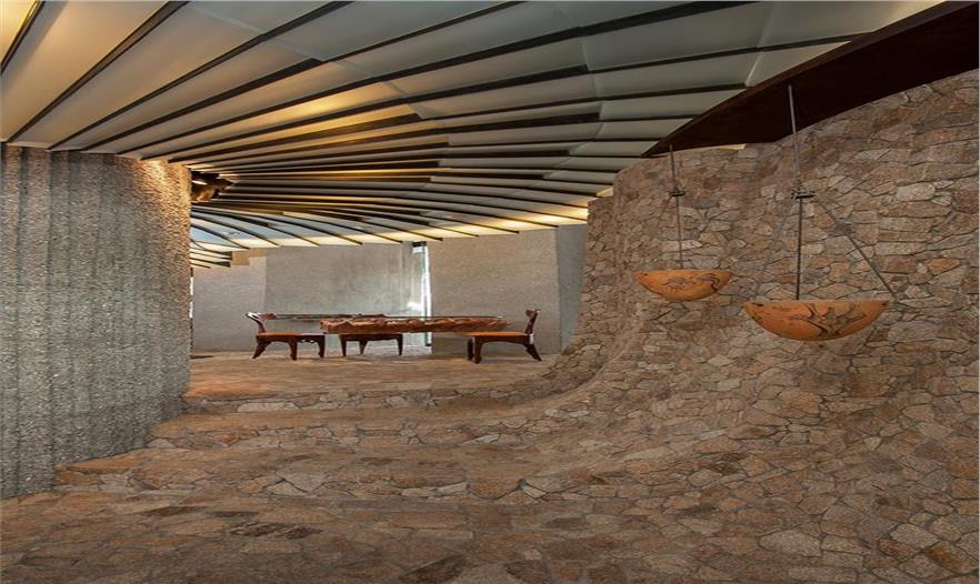 建筑仿佛天外來(lái)客在我球的秘密居所,一切的一切都表現(xiàn)出原始、有機(jī)、異域的風(fēng)貌,除了幾個(gè)人間的家具與電器外,否則,此情此景真的有如外星世界一般。
