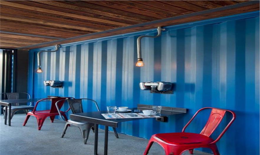 室內(nèi)裝潢工業(yè)感很強,金屬燈管、桌椅、房梁與集裝箱風格相稱,地面則是樸實、粗糙的水泥質(zhì)地。 因為金屬材料導熱性好,在太陽照射下容易溫度過高。所以這里的墻壁進行特殊隔熱處理,涂上了厚厚的聚氨酯泡沫塑料,以避免這種情況的出現(xiàn)。這樣也使得冬天時室內(nèi)的暖空氣不至于流失太快。