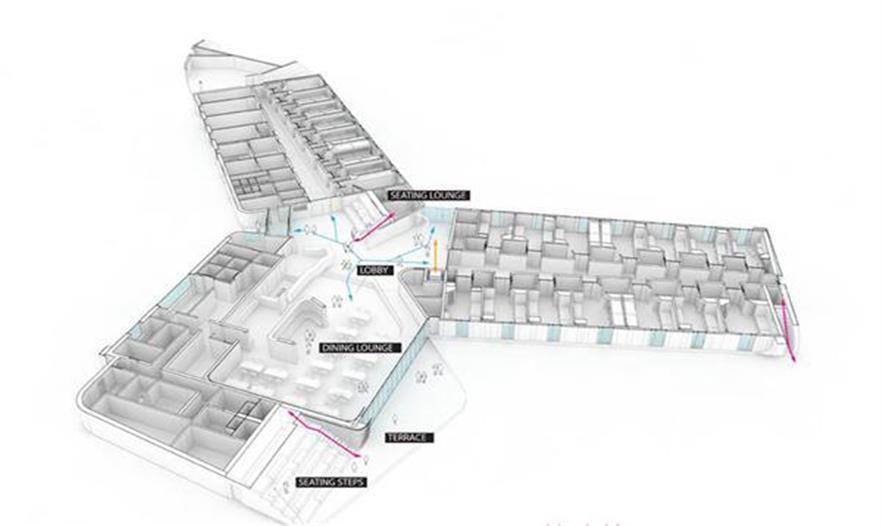 基于功能性和代表性的設(shè)計(jì)目的,國(guó)際建筑事務(wù)所LAVA設(shè)計(jì)了拜羅伊特青年旅舍,整個(gè)建筑的形態(tài)成“ Y ”字型。該方案考慮到年輕一代的旅行者,旨在提供一個(gè)設(shè)計(jì)時(shí)髦、有特性的住所。這個(gè)住所不僅僅是只提供一張干凈的床和洗浴的地方,而且是可以通過網(wǎng)絡(luò)聯(lián)系的社區(qū)。最重要的是,三個(gè)不同方向的體塊圍繞著中部的中廳布置,有利于循環(huán)流通。中廳連接了每個(gè)走廊的末端、外部運(yùn)動(dòng)場(chǎng)和花園。青年旅舍位于德國(guó),設(shè)計(jì)了180張床位,計(jì)劃2015年初開始建設(shè)。