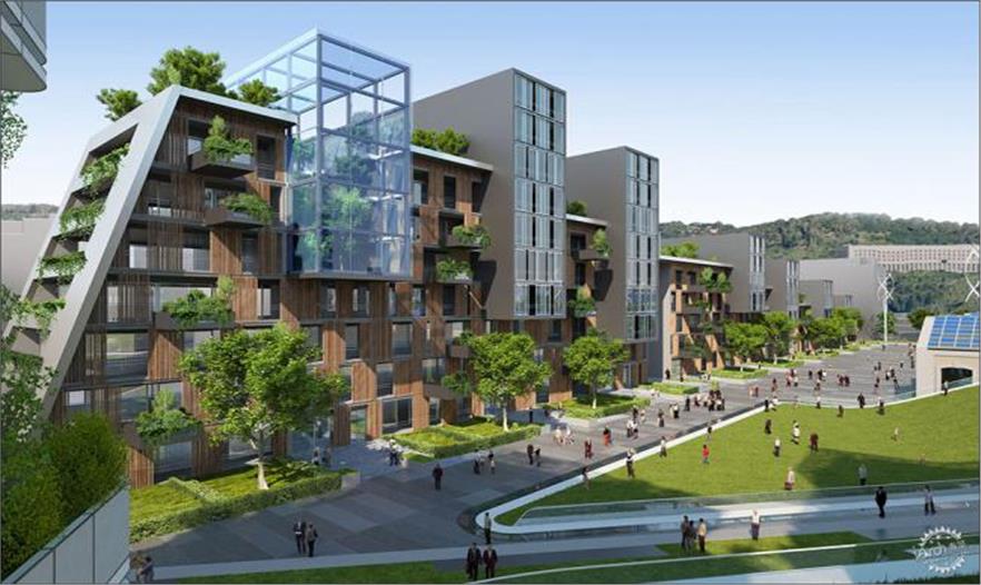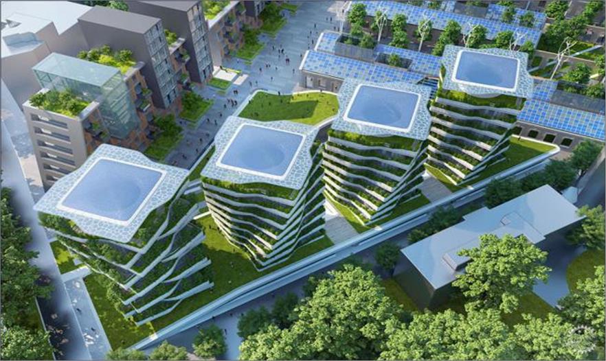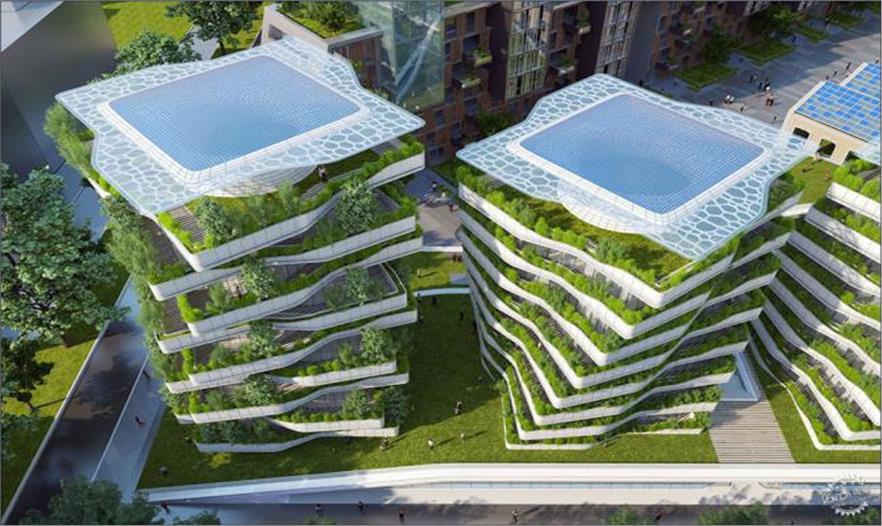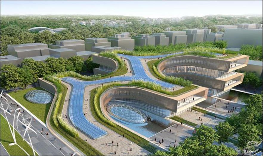 此外,城市生態(tài)系統(tǒng)是以步行為導(dǎo)向的,并在步行可達(dá)范圍內(nèi)植入相應(yīng)功能場地。所有的汽車被攔截在居住空間外圍,來緩解汽車尾氣問題,并在城市地下空間設(shè)置地下停車場。