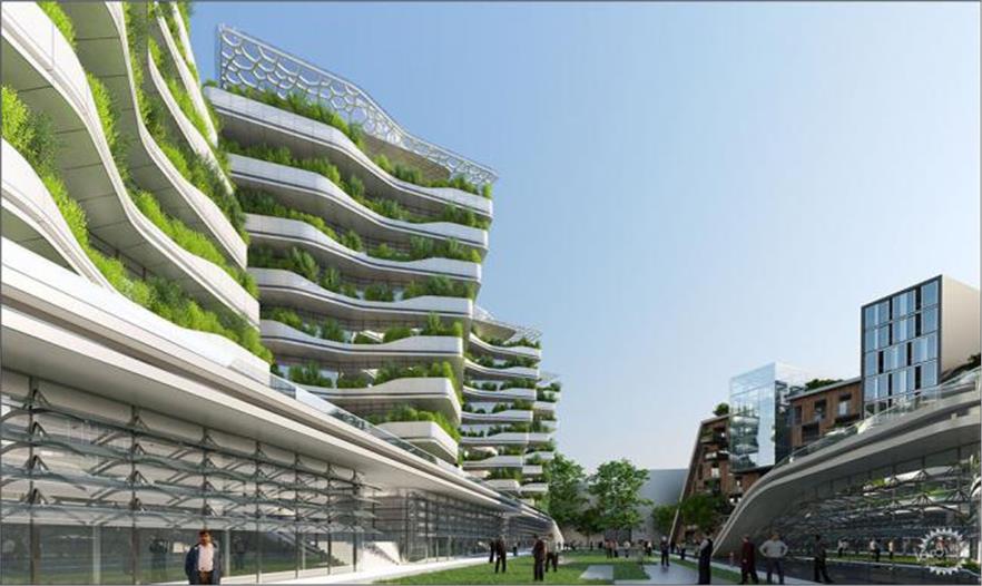 延伸到屋頂和陽臺的樹木的運(yùn)用不僅美化了街區(qū),也有助于實(shí)現(xiàn)自給自足這一概念。公共花園為居民提供了不斷更新的食物來源,幫助緩解當(dāng)?shù)氐氖澄镄枨?。另外,這些果園還帶來了環(huán)境效益,包括二氧化碳的過濾和有害微粒的隔離,創(chuàng)造一個更加健康的環(huán)境。