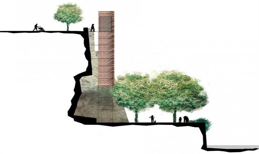 從地勢較高的古城區(qū)看河濱風(fēng)景,感覺挺美的從地勢較高的古城區(qū)看河濱風(fēng)景,感覺挺美的 其實(shí)磚塊只包裹了通道的三面,其中一面也是透明的。乘電梯的人一路可以近距離地觀察古老的巖壁,想必也是一番很有趣的體驗(yàn)吧。到最底層的 8 米通道就不再有紅磚包裹了。它四面透明,以讓電梯乘客更近地看到臨河景色——河流,巖石,蔥郁的樹,以及河濱小道。當(dāng)電梯來的時候,想往上走的人也能更快知道。 除了連接新舊兩個城區(qū),這個電梯或許還能讓更多市民踏足這條歷史悠久的河邊小路,而它其實(shí)本來就是很適合休閑、放松身心的公共空間嘛。