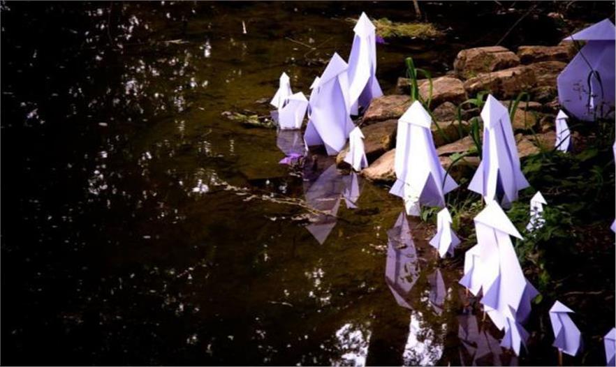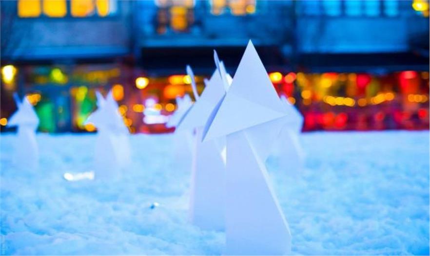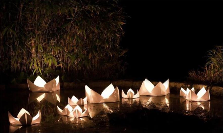 花園里的折紙小狐貍 Roborigami 已經(jīng)出現(xiàn)在不少藝術(shù)節(jié)和公共空間,Coco Sato 受到委托在那些空間里打造出仿佛超現(xiàn)實的夢幻效果,譬如在雪地里佇立著一群白狐貍啦,或者一大片睡蓮點(diǎn)亮了夜間的湖泊。 Coco Sato 本人表示,她希望用折紙創(chuàng)造出一個日本視角下的奇幻世界(“奇幻世界”類似于愛麗絲從兔子洞落入的那個仙境),參觀者能探索他們與空間、與自己內(nèi)心的關(guān)系,都市人能在這里找到平靜。 狐貍和睡蓮都是她從日本古代傳說和佛教象征物中得到的靈感。在日本文化中,狐貍受到很高的崇敬,被視作神的使者;而純白的睡蓮則跟純凈的極樂之地相聯(lián)系。所以,這些看著很萌的折紙作品還被認(rèn)為是有東方禪意的,也不足為奇啦。